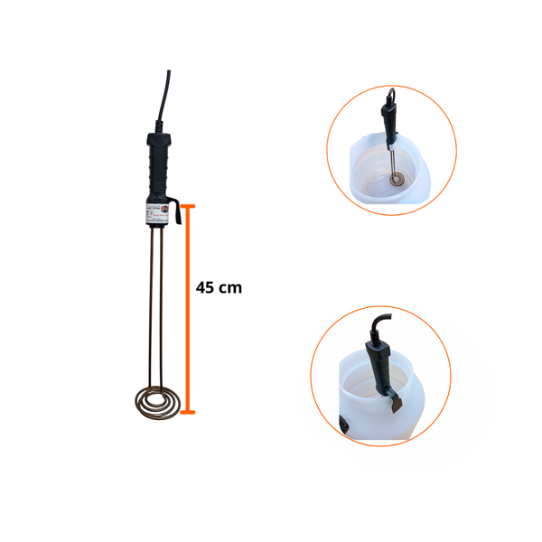 Uso: Aquecimento de água em baldes, tarros e recipientes de grande volume