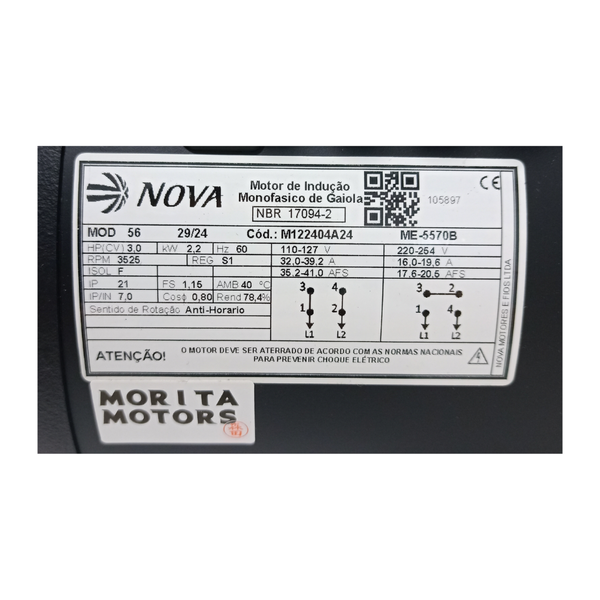 Possui rotor aberto em ferro fundido.